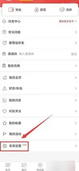 2.然后,在我的页面里,找到并点击【系统设置】这一项。