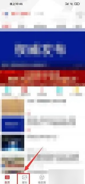1.首先,在云上南部App的首页,找到并点击功能区里的【爆料】选项。
