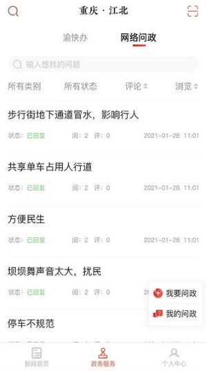 5、此外,你还能随时通过这个平台进行网络问政,轻松获知江北区的政务动态。
