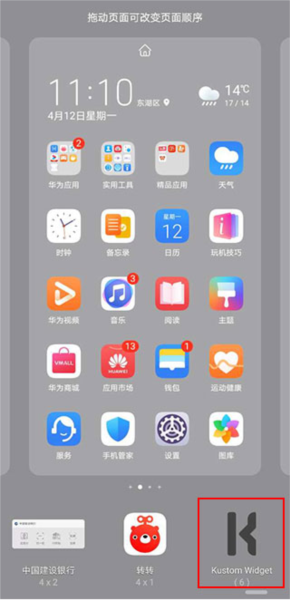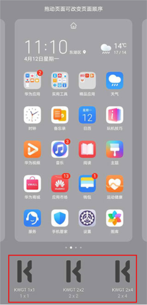 3、在小工具列表中找到KWGT的图标,然后选择一个比如4X4的尺寸。