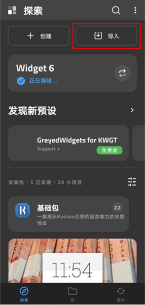 1、先下载并安装好本应用,同时提前下载好你想要使用的KWGT插件文件。