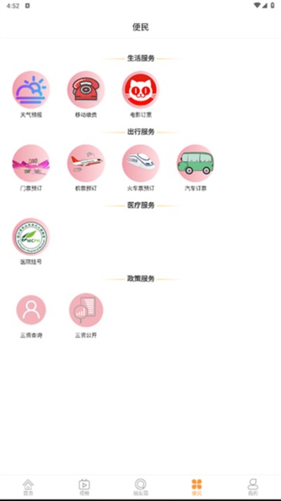 4. 便民服务: 生活缴费、企业办事、公共查询,各种服务分门别类,专为方便民众而设计。