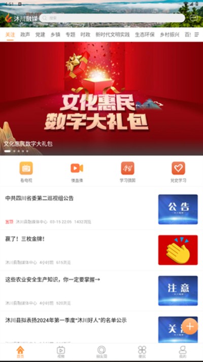想随时随地了解沐川大小事?沐川融媒App绝对是你的首选!作为县委县政府官方认证的唯一手机客户端,它不仅有最权威的本地头条和热点推荐,还能让你在线问政超方便。看累了文字,就切换到视听频道,电视直播、电台广播随心切换,精彩活动实时看,一个App帮你搞定所有沐川新鲜事!
