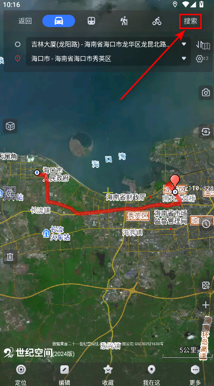 3、选择好你的出行方式,比如驾车或步行,然后点击“搜索”按钮。