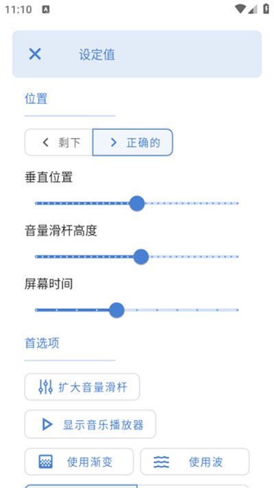 操控行为设定:面板在屏幕上停留多久,完全可以自己调整。当音量调节到最大或最小时,还可以设置振动反馈,给你清晰的提示。