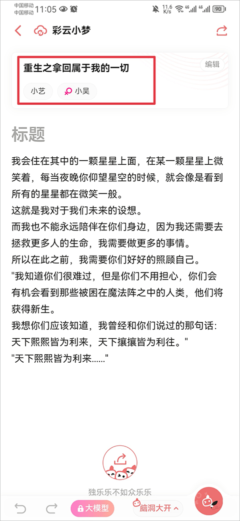 2、设定好人物身份和故事大纲,它就能帮你把整个故事丰满起来。
