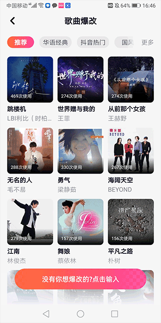 4、里面还有个“歌曲爆改”功能,老玩家应该都知道这类玩法。就是拿一首你很熟的热门歌,让AI用完全不同的风格给你重新演绎一遍,效果挺魔性的。