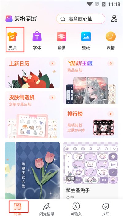 2、进入商城后,如果你看中了现成的主题皮肤,可以直接挑选并使用。但如果想自己动手创作,那就点击界面中的“皮肤制造机”选项,开始你的设计之旅。