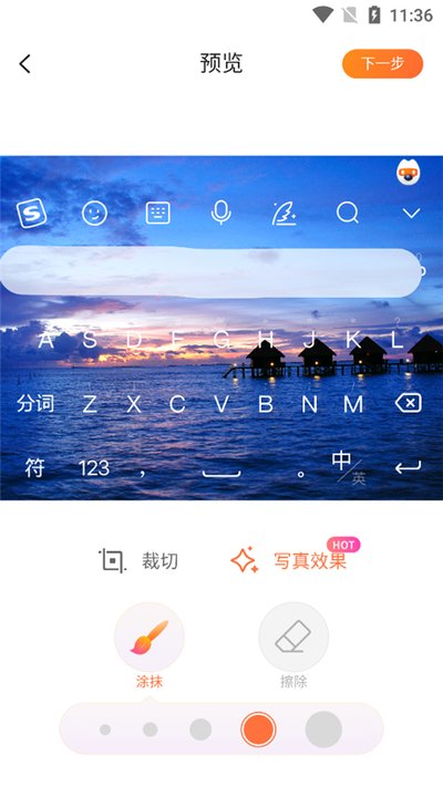 5、接下来,你可以用涂抹工具把图片上不希望在键盘上显示的文字或杂物擦除掉。这样处理后,当键盘处于非输入状态时,就能完整地展示你美美的写真背景了。