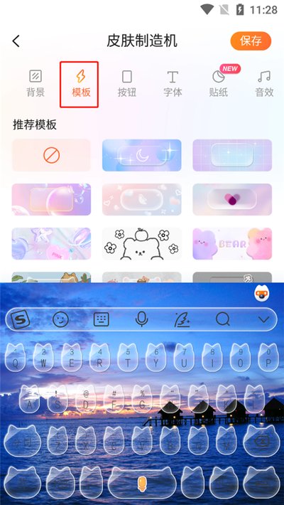 7、然后,点击“模板”选项。这里提供了超多不同风格的按键模板,你可以一个个尝试,选择最搭配你背景图的那一款。