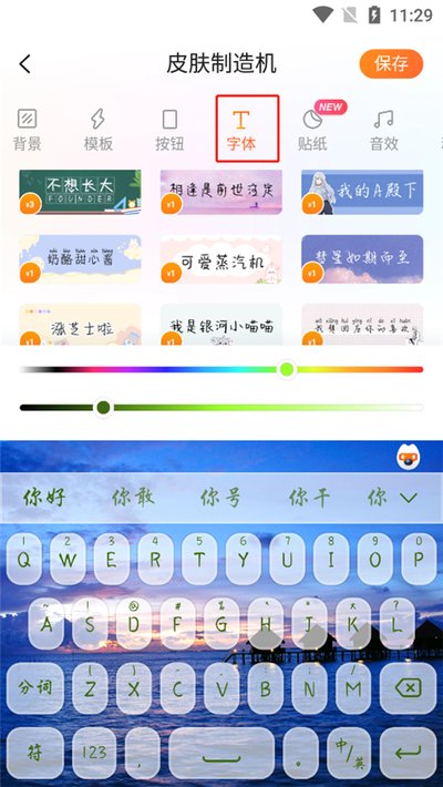 3、【字体商城】厌倦了手机的默认字体?在这里,你可以随心所欲地更换键盘上的字体,从可爱的手写体到酷炫的艺术字,让你的每一次输入都显得与众不同,细节之处尽显品味。