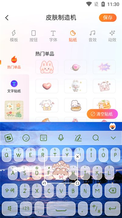 10、觉得键盘有点单调?那就去“贴纸”区逛逛吧。你可以挑选一些萌趣可爱的小贴纸,点缀在键盘的角落,增加一些活泼的气氛。