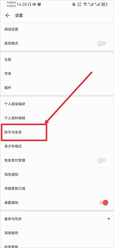 2、在设置列表里,找到“账号与安全”这一项,点它。