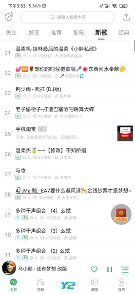Y2002音乐不光是听歌,它还是个分享社区。你要是自己也玩音乐,完全可以自己做点东西传上去。只要你的作品够顶,分分钟就能被大家听到,说不定下一个电音红人就是你。音乐库内含车载电音、网红喊麦、高品质广场舞神曲以及震撼的超重低音等多元类型,分类细致全面,并且提供品质上乘的音频供用户下载。。。