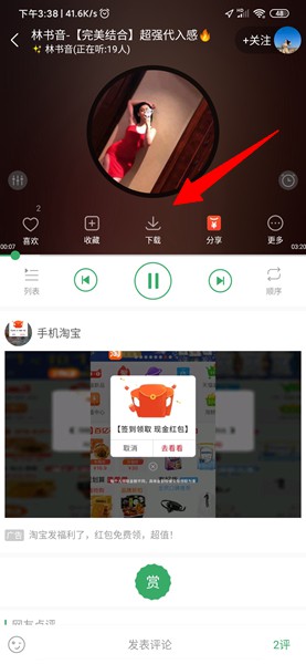 2.进到音乐播放界面之后,仔细看,能找到一个下载的选项。