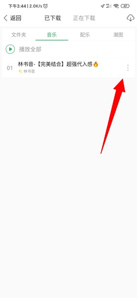 1.我们需要先去“下载管理”那里,找到你下载好的那首歌,点它右边那三个点点的图标。