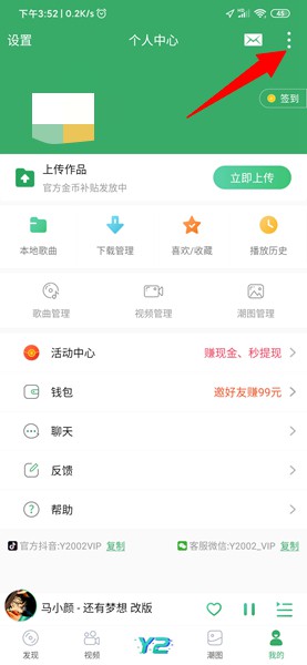 1.我们先去个人中心,看到右上角那三个点的图标没,点一下它。