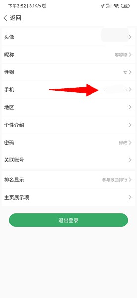 第三步,进入修改资料界面,找到“手机”选项,该选项旁会显示您注册时绑定的手机号码,点击此项继续操作。。