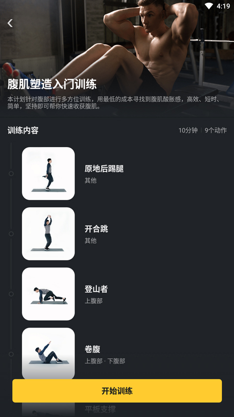 3、然后点下面的“训练”标签,这才是重头戏。里面全是各种各样的腹部训练课程,选择多到眼花。