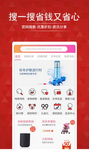 想找一款能帮你聪明购物、省心省钱的神器吗?搜店网就是这么一款贴心的线上购物APP。它就像你的专属购物雷达,网罗了数不清的品牌好物,让你轻松找到心头好。更棒的是,这里还有海量的隐藏优惠券等你来拿,每次下单都能省下一笔,购物的快乐瞬间翻倍。如果你也想体验这种挖宝式的购物乐趣,那就赶紧来试试看吧!
