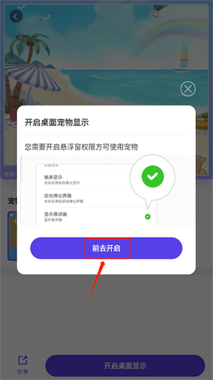 4、买下宠物后,系统会提示你开启桌面显示,点一下就行。