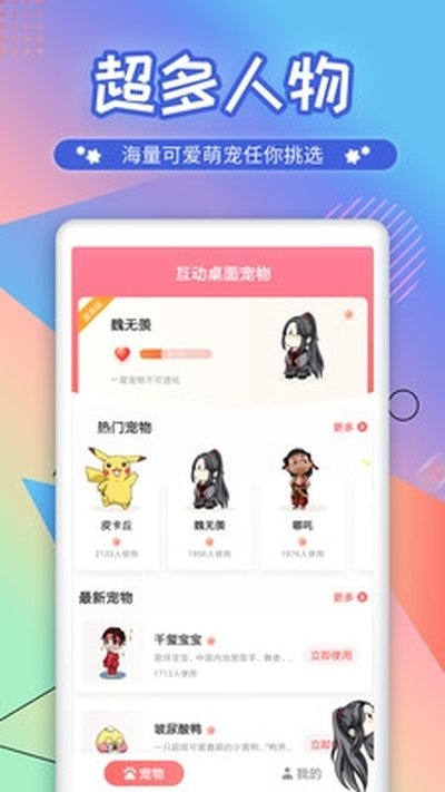 4.宠物种类确实多,老二次元狂喜。从魔道到火影,从初音到皮卡丘,甚至还有蜡笔小新和海绵宝宝这些童年回忆。讲真,UI稍微有点复古,但功能确实没毛病,宠物库也够深,总能找到你喜欢的。