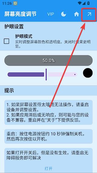 1、首先启动屏幕亮度调节应用,然后找到并轻点一下图片里圈出来的那个地方。