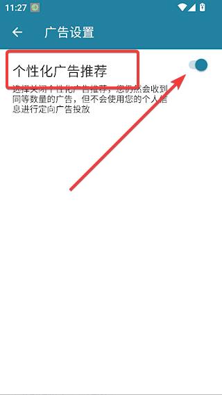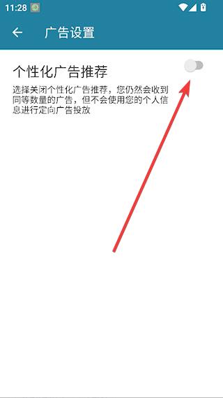 4、接着,你会看到一个叫“个性化广告推荐”的选项,直接点击它旁边的开关按钮就行。