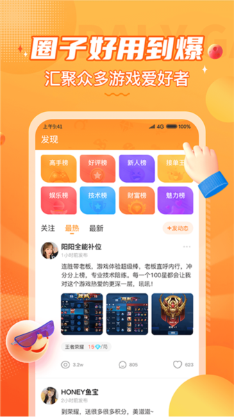 应用内设有高手榜、好评榜、魅力榜等多种特色榜单,方便你快速发现平台上的优秀玩家。