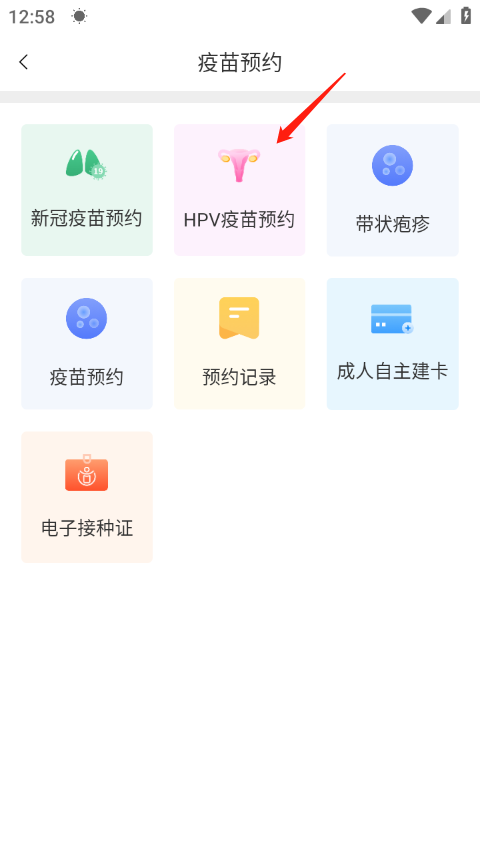 4、然后,在疫苗接种页面里选择“HPV疫苗预约”。