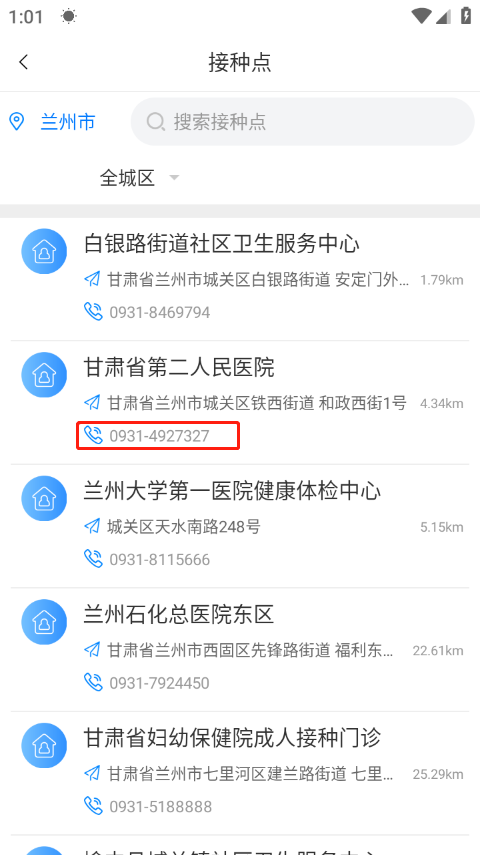 6、最后,在列表中找到你预约的那个接种门诊,点击门诊信息下方的电话图标,直接拨打该电话联系医院客服,通过人工沟通的方式来取消预约。