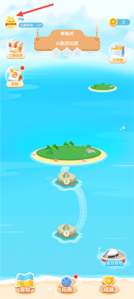 1、启动应用后,在主页的冒险界面上,找到并点击左上角的个人头像。