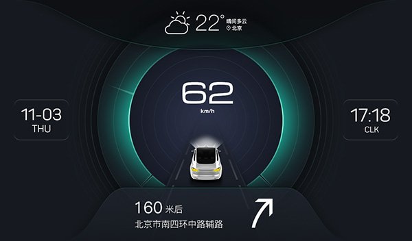待机背景是全景式的动态天气,让你在车里也能感受到外面的阴晴雨雪。