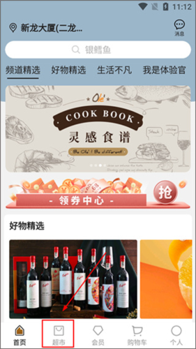 1、启动Ole lifestyle应用,在主界面底部导航栏找到并轻点【超市】选项;