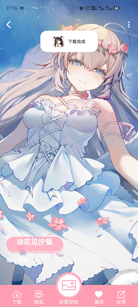 3、当屏幕上弹出“下载完成”的提示时,就说明这张动态壁纸已经成功保存到你的手机相册里了。