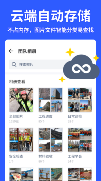 所有拍摄的照片都会安全地存储在云端,并且系统会自动进行归类整理。团队管理者可以在电脑后台轻松地一键整理和导出所有照片,管理起来特别省心。