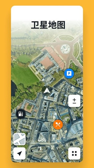 • 应用内置了由TomTom等知名供应商提供的全球各国3D离线地图,视觉效果相当立体。