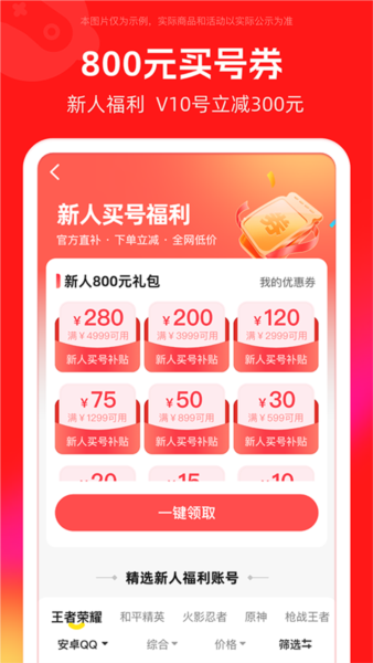5.【折扣】:热门游戏的全英雄、全皮肤账号,或是游戏充值,都能享受到折扣优惠。