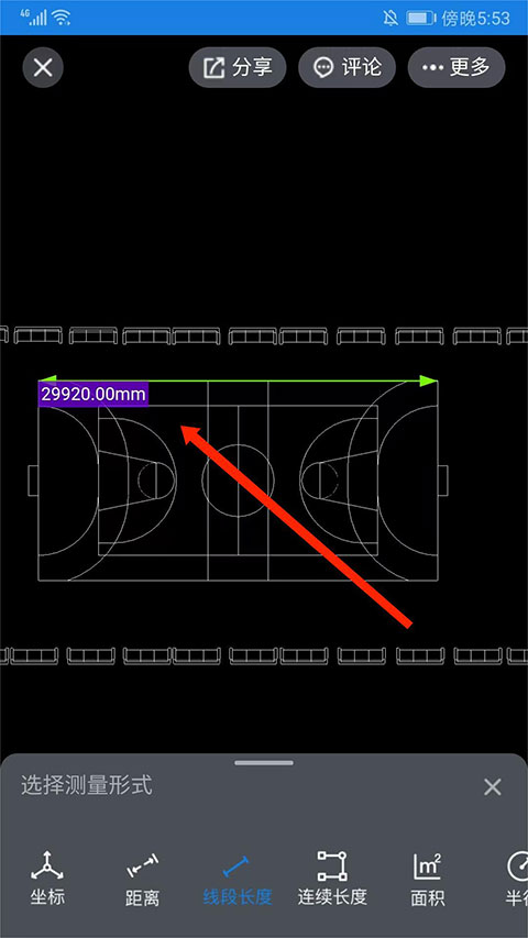 6、用手指精确点选你需要测量的线段或者弧线,选择完成后,测量结果会立刻显示在屏幕上。