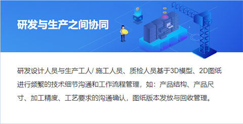研发设计人员需要与生产线工人、现场施工人员以及质检人员,基于3D模型和2D图纸就技术细节进行紧密的沟通和工作流程管理。例如,对产品结构、具体尺寸、加工精度和工艺要求进行确认,以及对图纸版本的发放与回收进行管控。