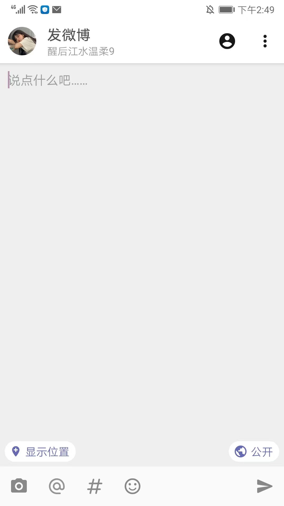 3、在打开的编辑页面里,写下你想说的文字、配上图片,然后点击右下角的发送图标(一个纸飞机形状)就能发布了。