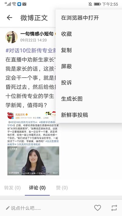 4、在主页长按右下角的按钮,可以快速回到顶部并刷新页面。对于所有可以滚动的页面,双击顶部的标题栏能让内容立刻滚到最顶端,再次双击则会刷新当前页面。查看微博时,应用会区分原创和转发内容,默认显示评论、转发和点赞数。你也可以在“设置-阅读习惯”中关掉这些按钮,改为通过长按微博来查看具体数量。