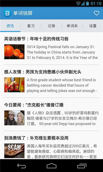 1、方便省时:通过直接接管手机的锁屏界面,这款应用真正做到了让你随时随地都能学习,无需特意打开某个程序,利用一切碎片化时间来提升词汇量。