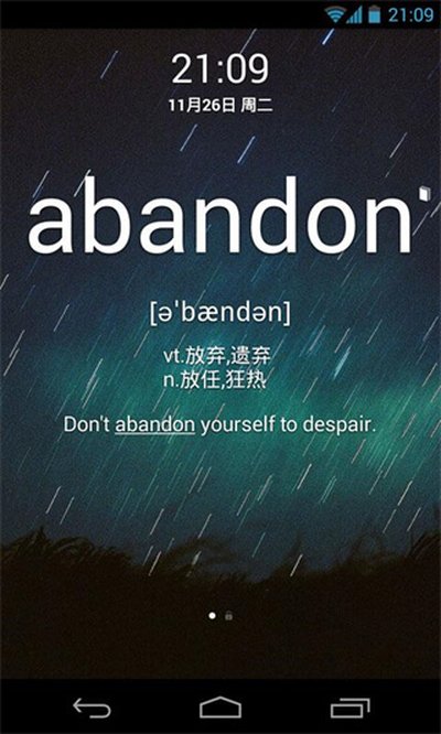1、每一次你点亮手机屏幕准备解锁时,它都会为你呈现一个全新的单词,让学习无处不在。