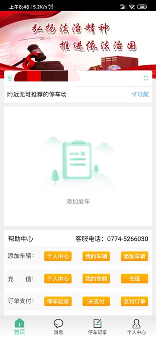 2、看到旁边的添加车辆按钮没?点进去,把你的车牌号这些信息填好保存就行。