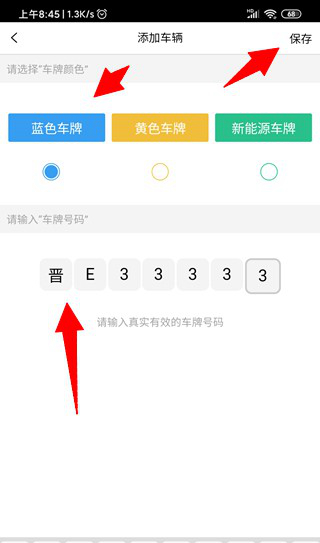 3.接下来,按照要求输入你的车牌颜色和完整的车牌号码。