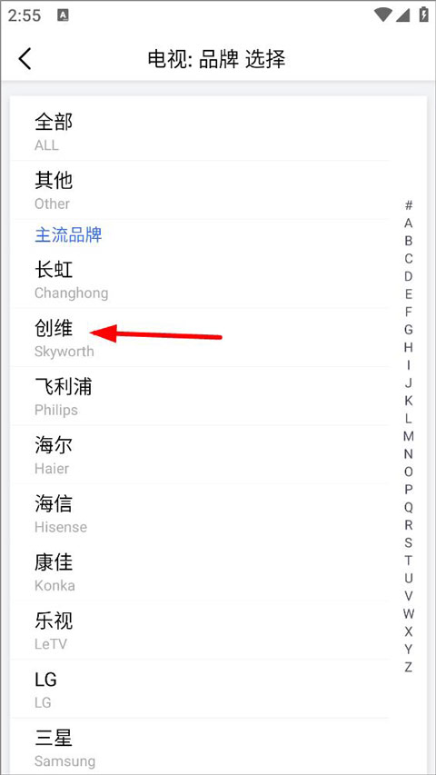 3、然后,在列表中找到并选择你的电视机品牌,这样电视遥控器就会被成功添加到你的遥控器列表里了。