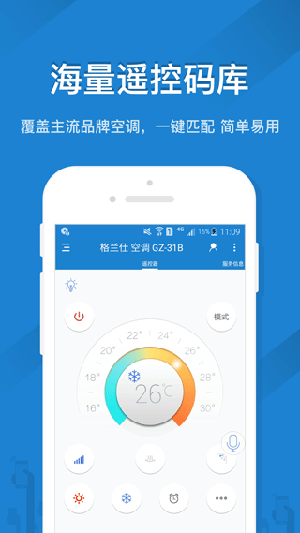 遥控精灵app安卓版是一款能将各种遥控器整合到你手机里的实用工具。只要安装了它,你的手机就能立刻变身为一个功能齐全的遥控中心,特别是对于空调的控制,它几乎复刻了原装遥控器的所有功能。无论是制冷制热、调节温度,还是切换到睡眠、超强、清新、节能或除湿等特殊模式,甚至是设定定时开关机,动动手指就能轻松完成。