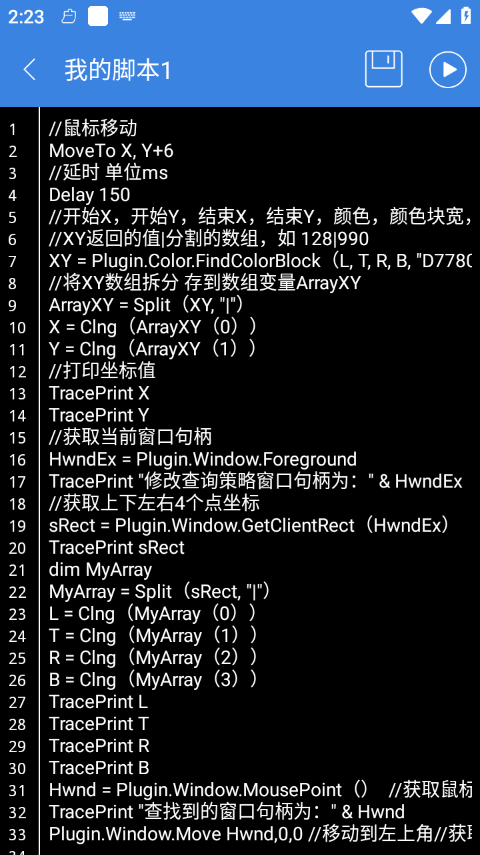 6、脚本的语法以按键精灵自家的MQ语言为基础,理解和学习起来都非常轻松。