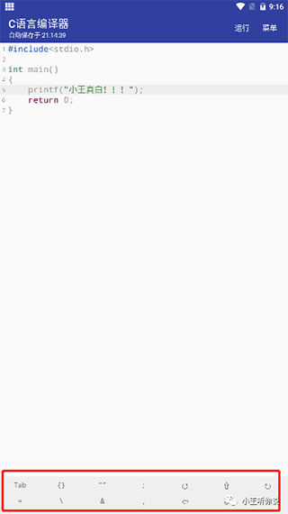 5、看到截图里这个界面没,最下面那排都是常用的代码符号,点一下就能输入。